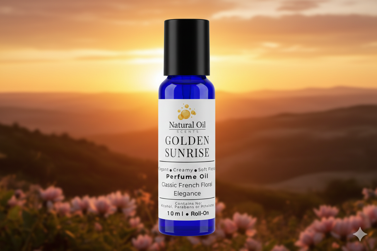 Golden Sunrise is a warm, elegant essential oil perfume. Soft florals blend with gentle warmth and classic sophistication, creating a refined scent that feels feminine, confident, and effortlessly beautiful from day to night.