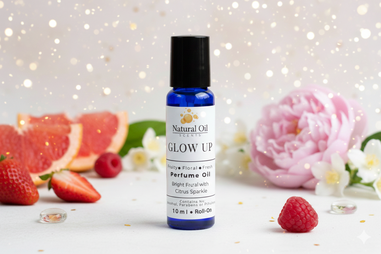 Glow Up is a bright, confident essential oil perfume. Juicy fruit notes blend with soft florals to create a vibrant, flirty scent that feels fresh, feminine, and uplifting—perfect for everyday wear or when you want an instant mood boost.